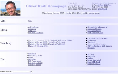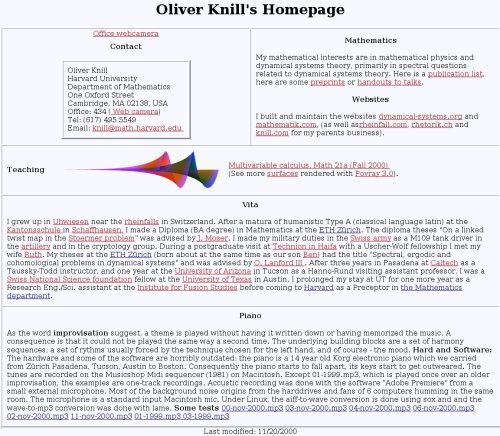 and distributing documents to the class, or for announcements. Here are snapshots for nostalgic reasons. The archived front pages are still accessible by clicking on them but further links do no more work. |