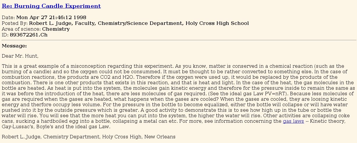 These were the first google hits while searching for "experiment candle water":