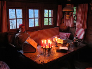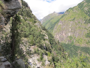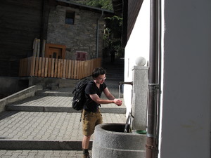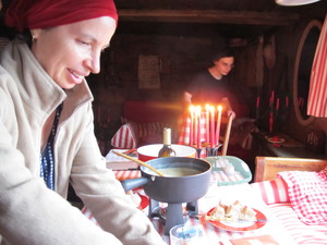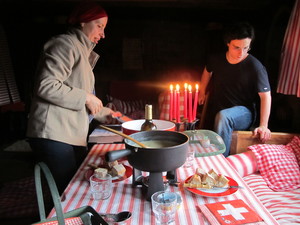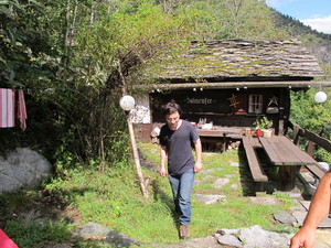 | Fondue im Salmenfee (ein im Jahr 1864 gebautes Chalet), Wanderung im Baltschiedertal (Teil vom Welterbe Schweiz), Rast im Hotel Bahnhof in Ausserberg und Wanderung nach Baltschieder. Bilder vom 12-16. August, 2014. (Klicken auf ein Bild gibt ein grösseres Bild.) | Fondue in Salmenfee (a chalet built in 1864), walk into the Baltschiedertal (part of World heritage), rest in Hotel Bahnhof and decent to Baltschieder. Images: August 12-16, 2014. (Click on picture for larger image.) |