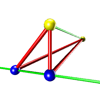 is solvable uniquely if and only if the 4 points are not coplanar. Mathematical reformulation: We look for a tetrahedron ABCD in space for which the directions a=AC,b=AD,c=BC,d=BD are known. Is the tetrahedron uniquely determined by these directions? The answer is yes, if the four points are not coplanar, no, if the four points are coplanar. Proof: If the four points are not coplanar, the plane generated by a,b and the plane generated by c,d are not parallel and intersect in a line. Lets call it the hinge line. Chose a point on that line and call it D. Draw the line in the cirection of c and chose a point B on that line. Now the rest is determined. The line in the direction d from B hits the hinge line in a point D. Attach the other directions to get the point A. If the four points are coplanar, one can chose any pai of points A,D, attach the directions o AC,AD at A and BD,CD at D to get a quadrilateral. These quadrilaterals are not all similar. |