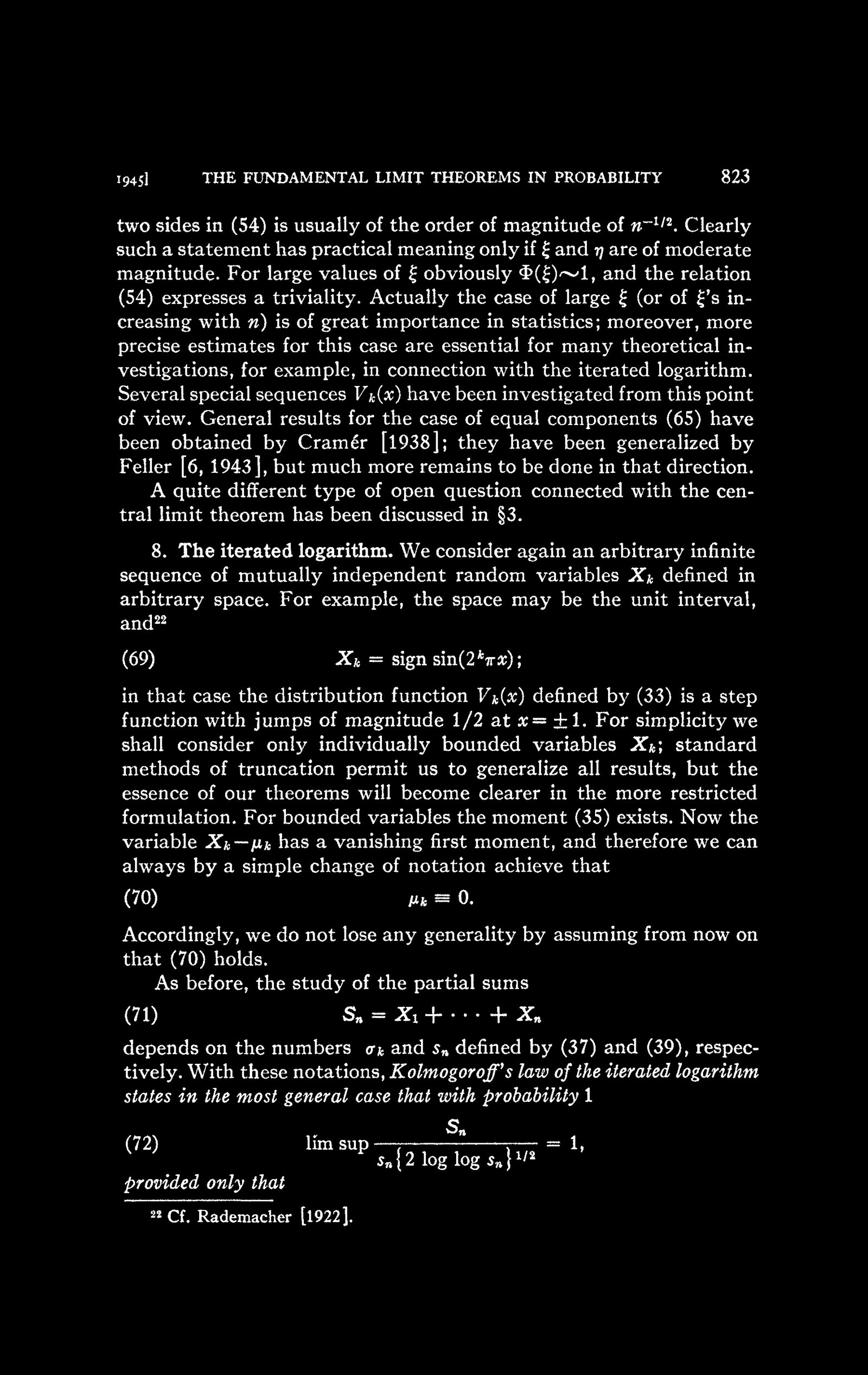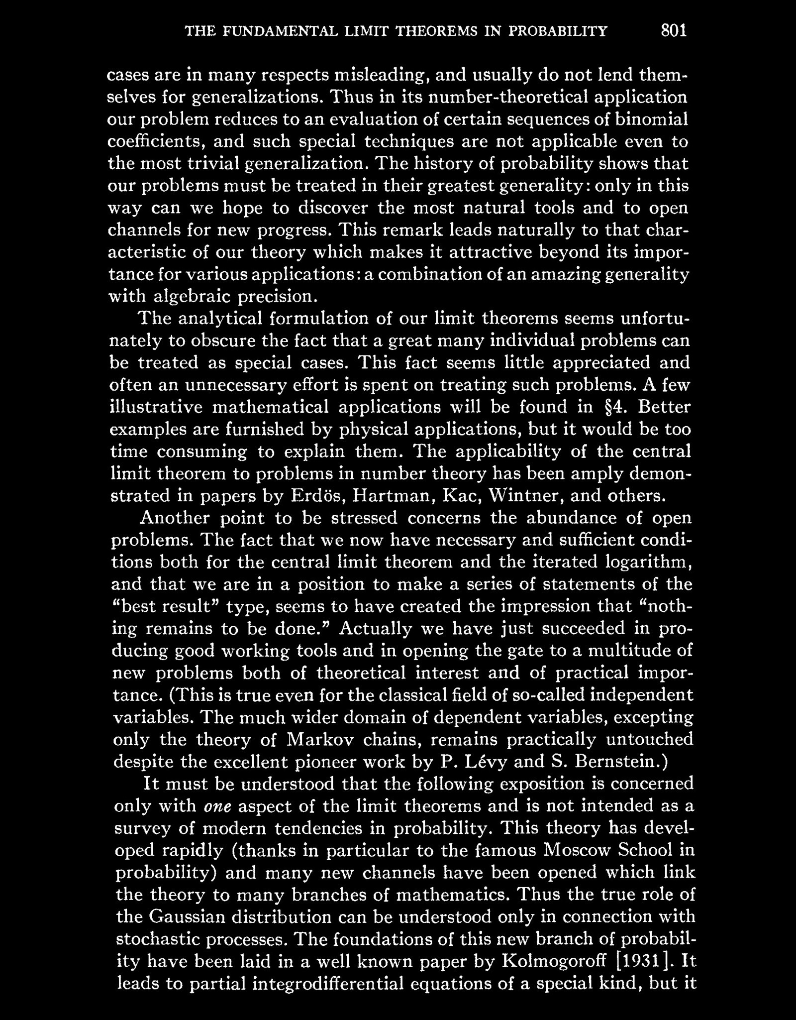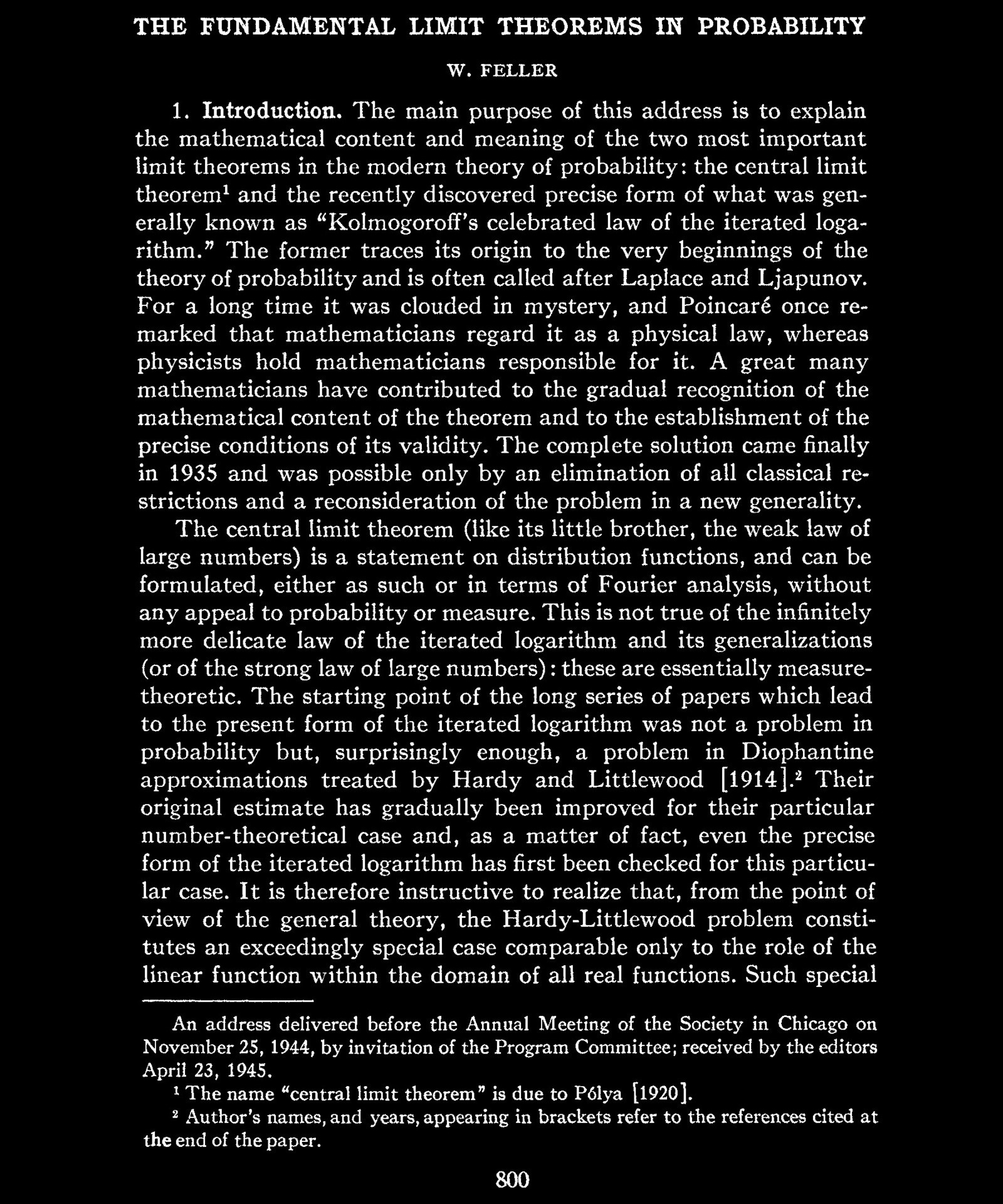 It mentions more than we did, like the law of iterated logarithm. But the article contains some interesting thoughts and opinions. See for example the remarks about the Petersburg paradox around page 820.