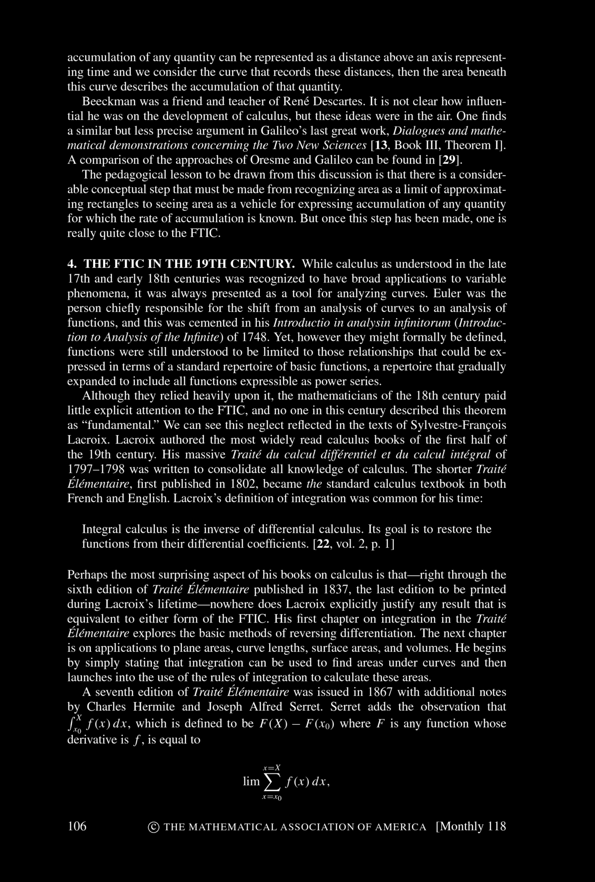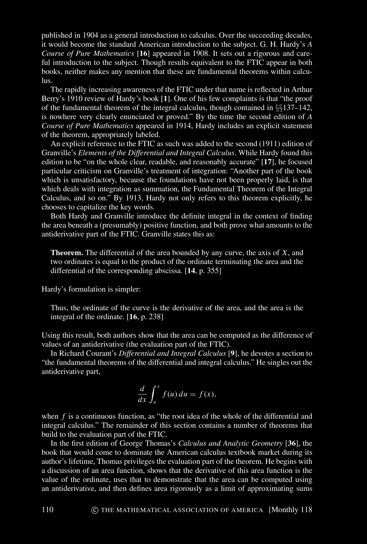 fundamental Theorem of Integral Calculus". You find the article below. Bressoud concludes his article with: