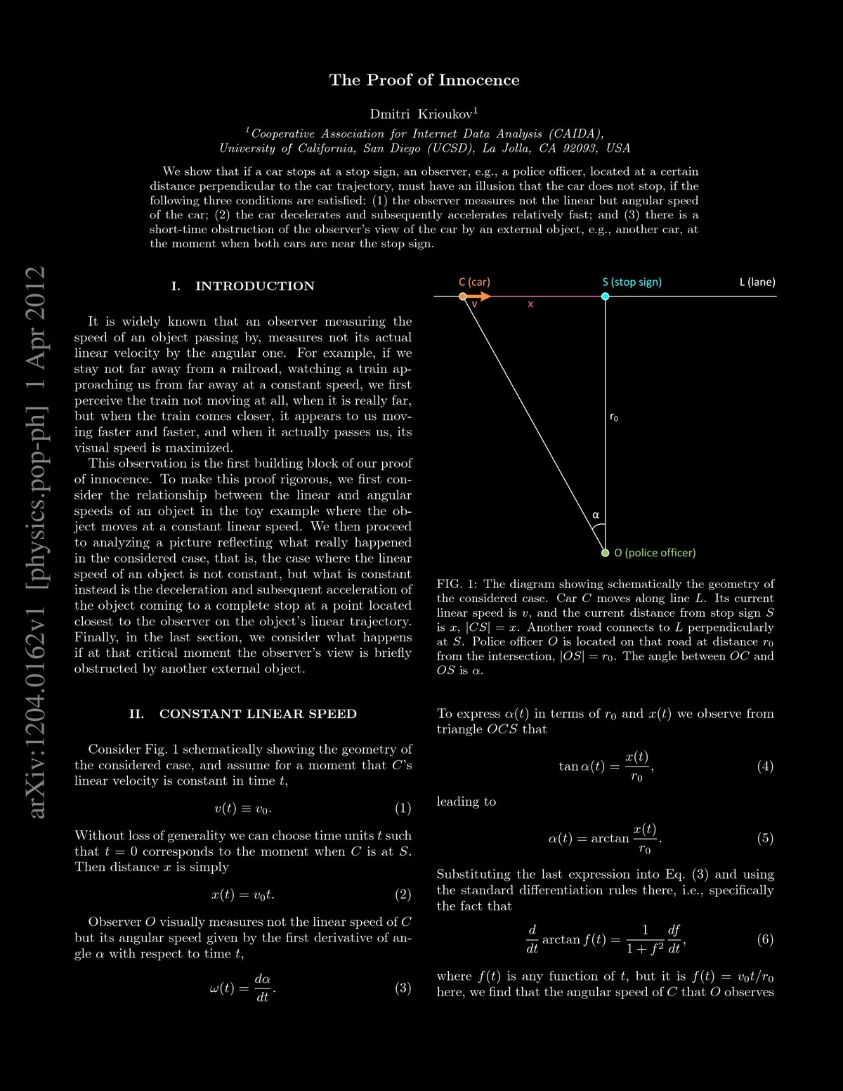 Knowing some math can help you avoid a ticket. A car approaches a stop signs and runs it with constant speed. A policemen observes this. How does the angular velocity change? This is a related rate problem we can solve (remember the airplane prloblem in the homework). Assume the policemen is at distance r from the stop sign. Since x = r tan(a) we get a=arctan(x/r) and a'=(v/r)/(1+(x(t)^2/r^2). This function is the "witch of Agnesi" which is also important in statistics when we look at the Cauchy distribution.PDF (Source)