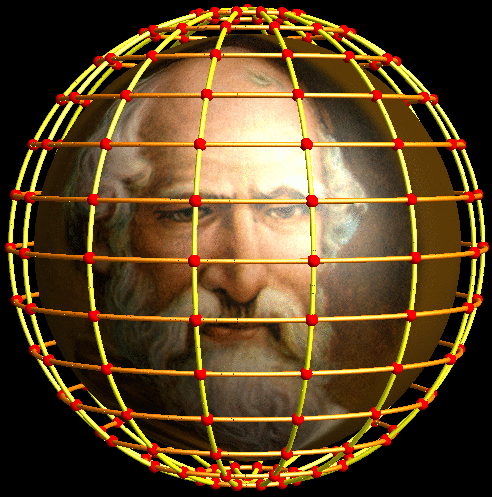 | This animation is called: "The ghost of Archimedes in a sphere". Not convinced, it is genius? Remember that not everybody is Archimedes and that in art, everything is allowed (see the clip to the right). By the way, Archimedes was born 2300 years ago and is the father of integral calculus. One of his biggest achievements is the calculation of the volume of the sphere. |