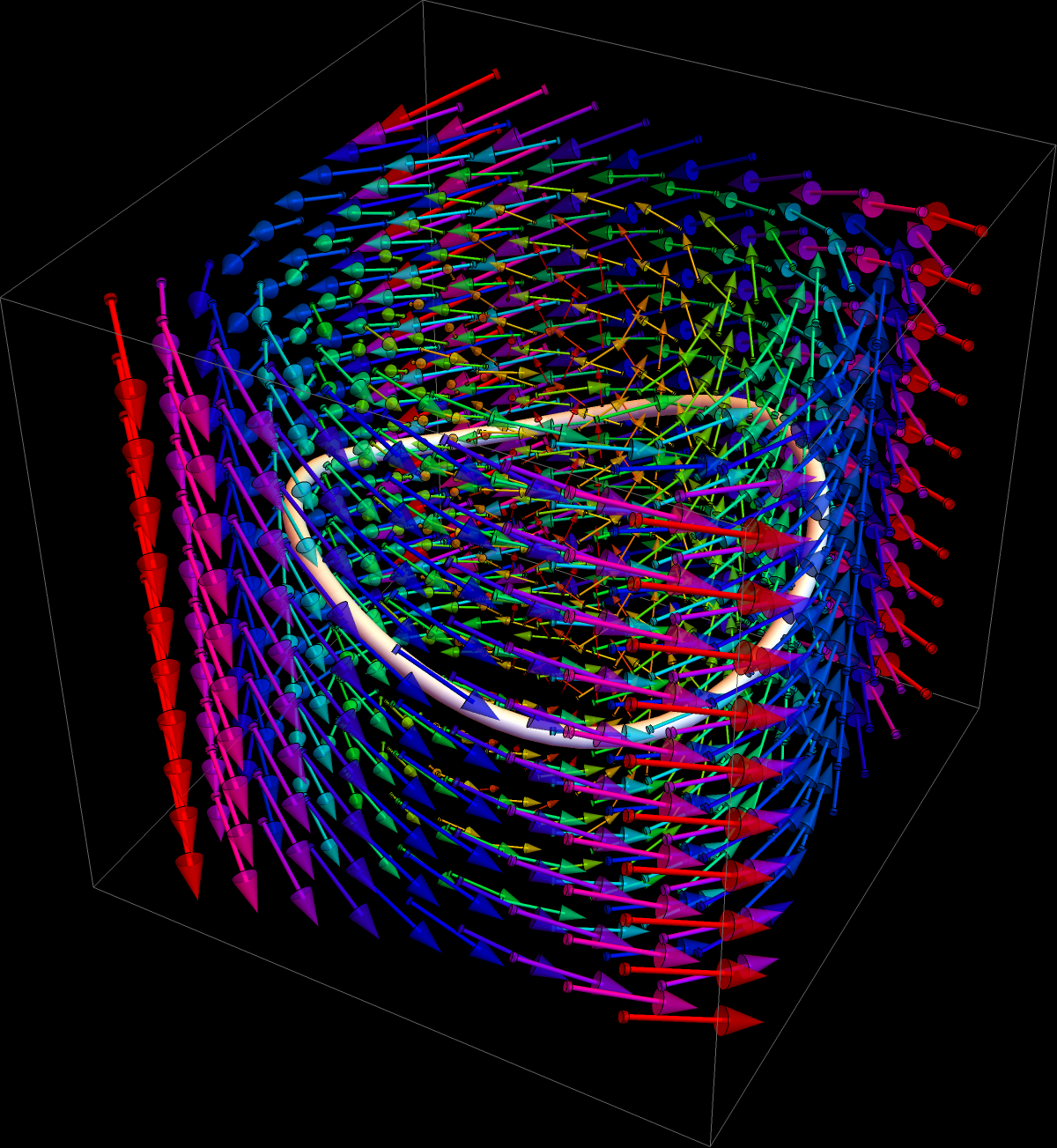 In the final exam of 2014 seen here we have asked whether it is true that the curl of a vector field F is always perpendicular to F. It is not as one can add a general constant field to a given field without changing the curl. One more generally can add a gradient field to F and still get the same curl.One is seduced to think that curl(F).F = 0 because Nabla calculus tells that curl(F) = ∇ x F is a cross product of ∇ with F, and because we know that the cross product of two vector is perpendicular to both.