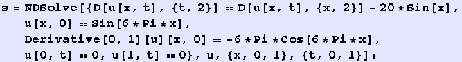 Here is a numerical computation of the one dimensional wave equation with inhomogeneous right hand side on the unit interval with boundary conditions zero at 0 and 1.