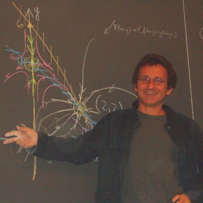 Oliver Knill teaching, or rather posing. Photo: Amy Tao, April 20, 2007, in lecture hall 507.