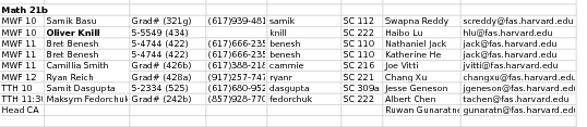 | Oliver Knill knill@math | Office hours: MoWe 4-5, Fr 2:30-3:30 |