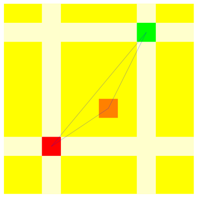 Lets count the number of upcrossings before and after the switch. Assume row a and c are switched. We look at one pattern and assume that(a,b) be an entry on row a and (c,d) is an entry on row b. The entry (a,b) changes the number of upcrossings to (c,d) by 1 (there is one upcrossing from (a,b) to (c,d) before which is absent after). For each entry (x,y) inside the rectangle (a,c) x (b,d), the number of upcrossings from and to (x,y) changes by two. (there are two upcrossings to and from the orange squares before which are absent after). For each entry outside the rectangle and different from (a,b),(c,d), the number of upcrossings does not change.
