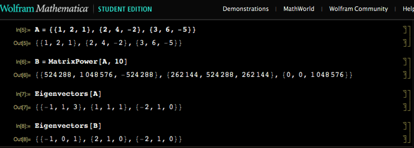 calculator to check on the eigenvectors of the matrix