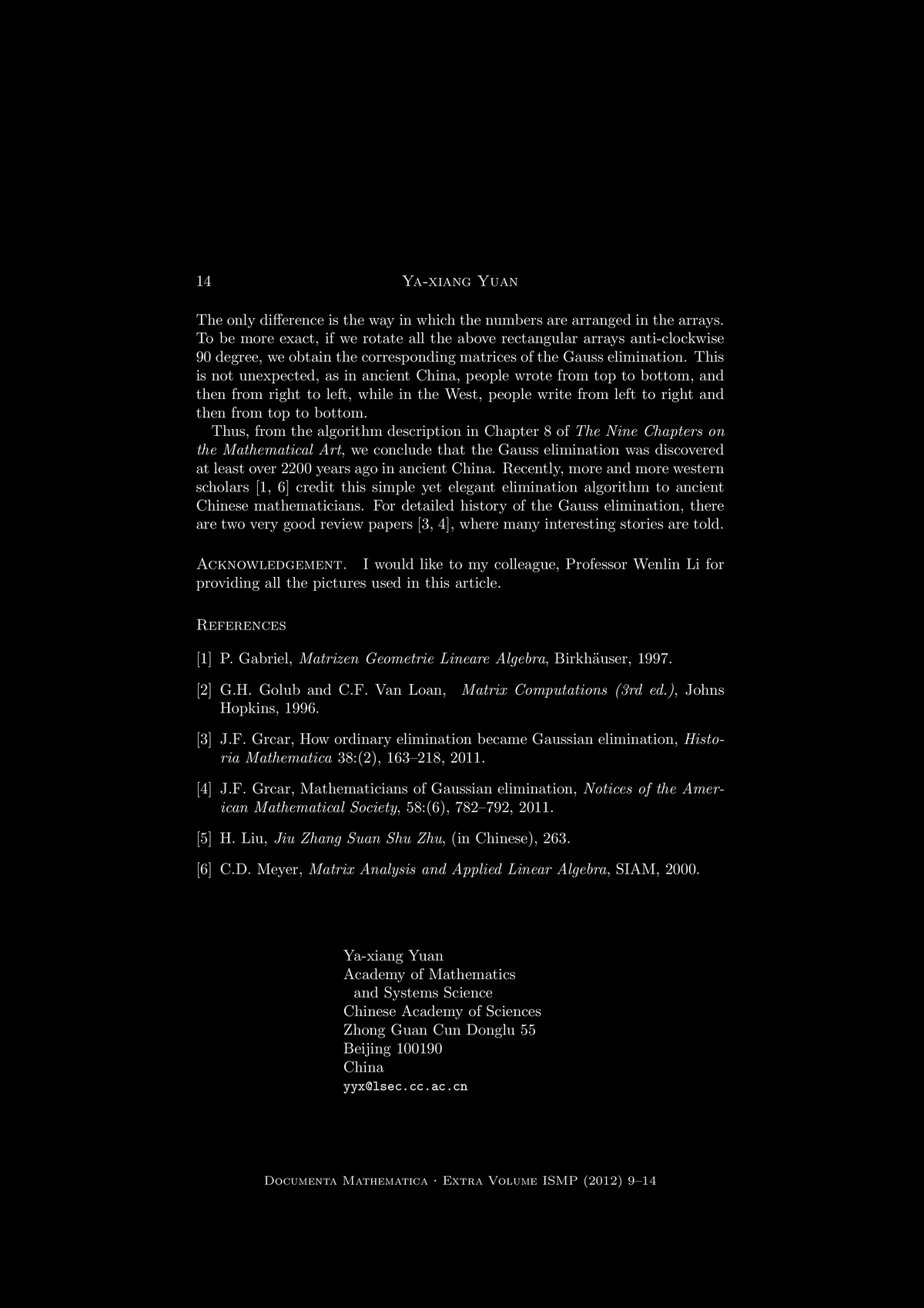 "Jiu Zhang Suan Shu and the Gauss Algorithm for Linear Equations",