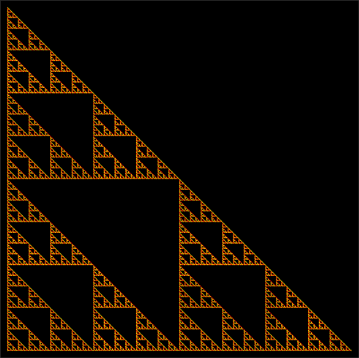 Pascal triangle, in which the integers are seen modulo 2 (we look at