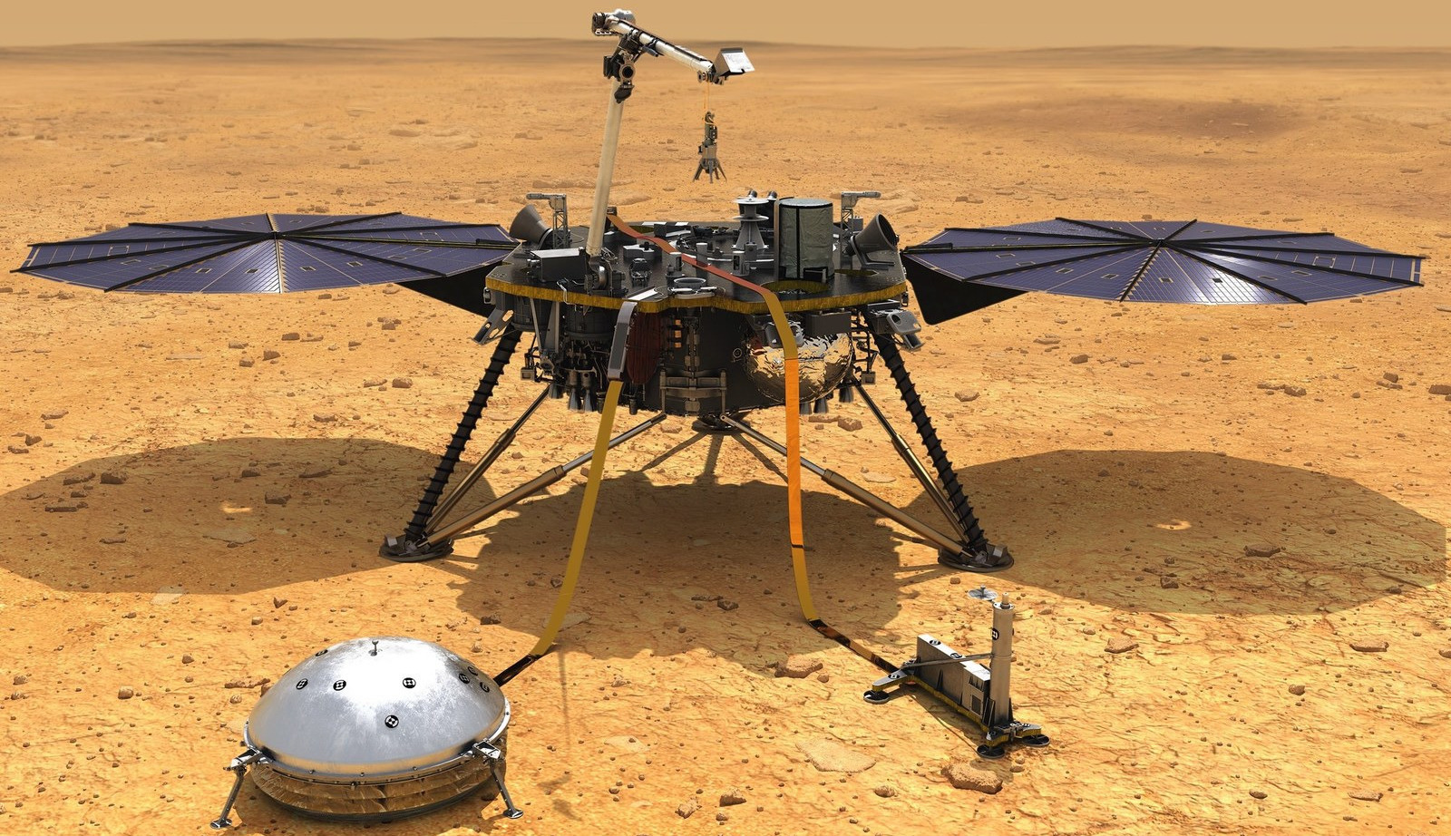 Exciting time on Mars. Insight has successfully landed on Mars and hopefully will soon start digging. We have computed in the divergence lecture, how the gravity inside a body changes. Insight will however only drill a few meters. The following pictures are mostly from NASA, distributed on many other sites like popular mechanics, discovery channel. Search for more pictures. There are also various animations and slides on Youtube like these: