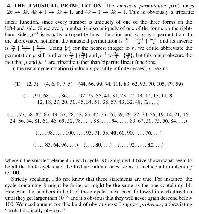 permutation of Conway is defined by the rule that n gets mapped into 3n/2 if n is even