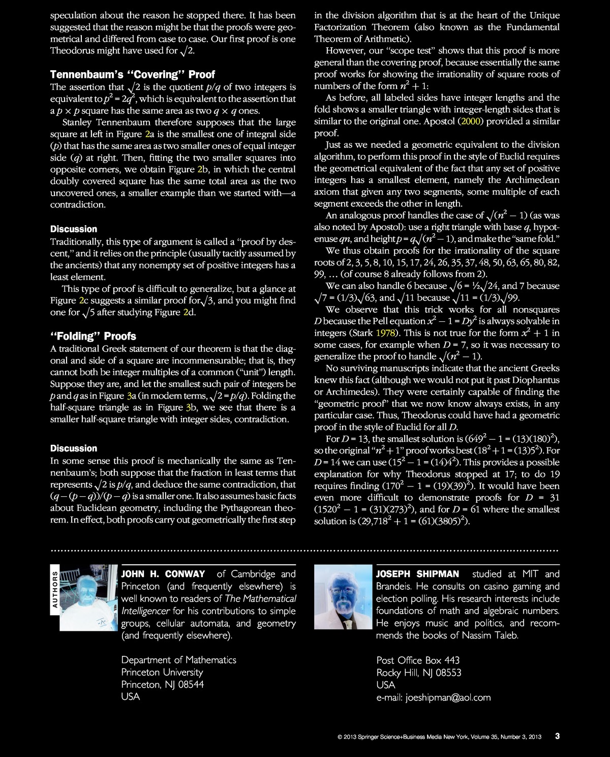 amusical sequence or the game of Life). We will look at irrationality proofs