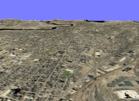 | A 3D rendering of a flyover scene with Povray used a higher resolution of the texture and height fields. This is a tour of Cambrige as one can see also in the Google earth application. |