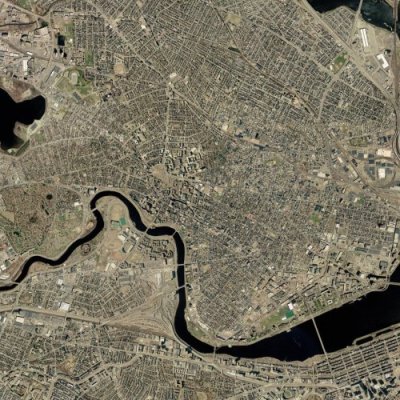 | Texture of a a neighborhood of Harvard. (Source: google maps) | Height field of the same neighborhood. (Source: height data from http://www.topozone.com) |