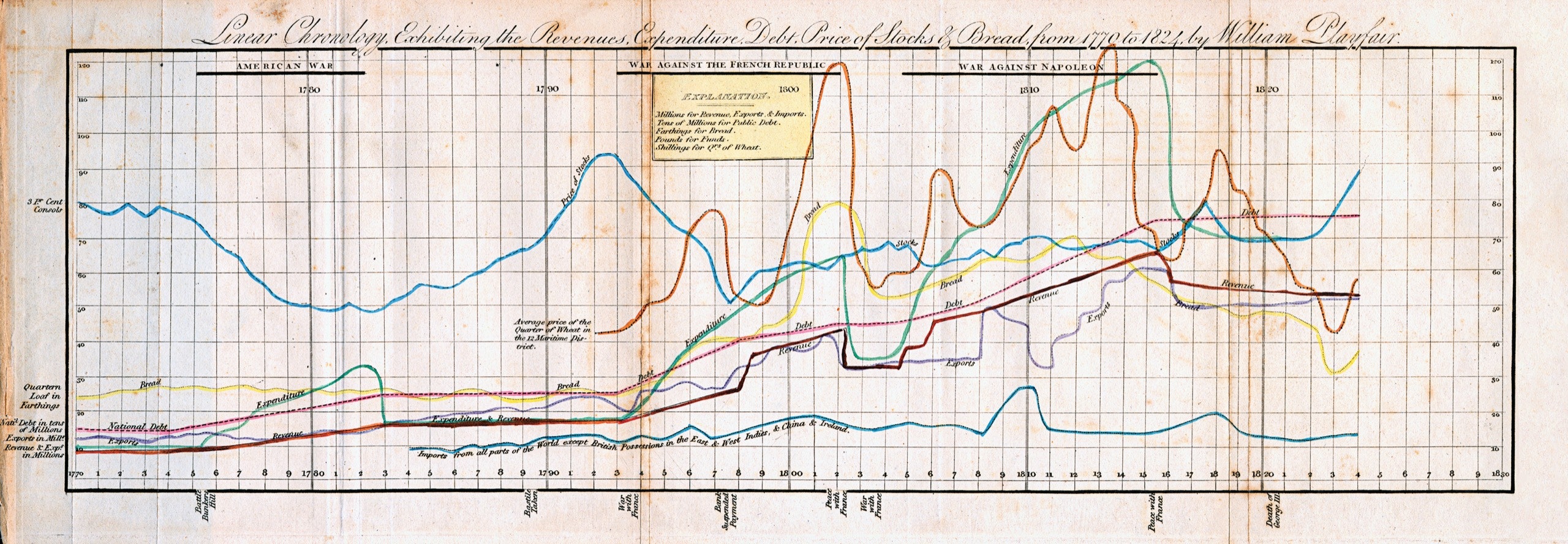 An 1824 time-series graph by William Playfair.