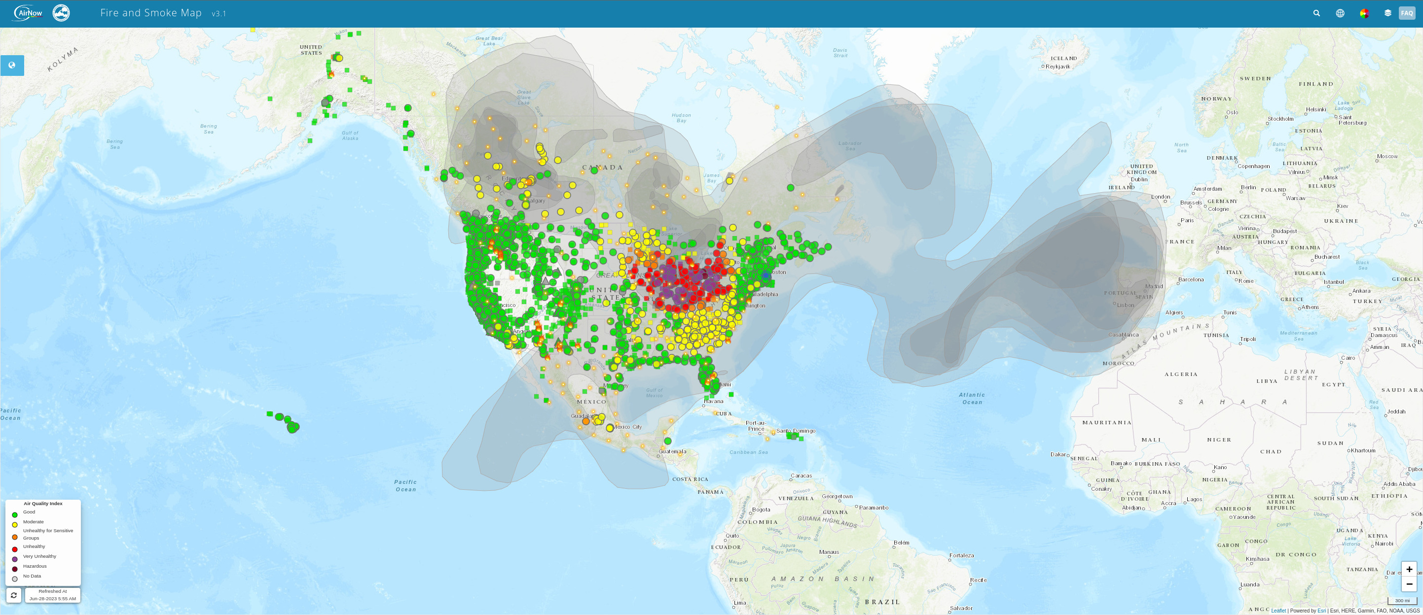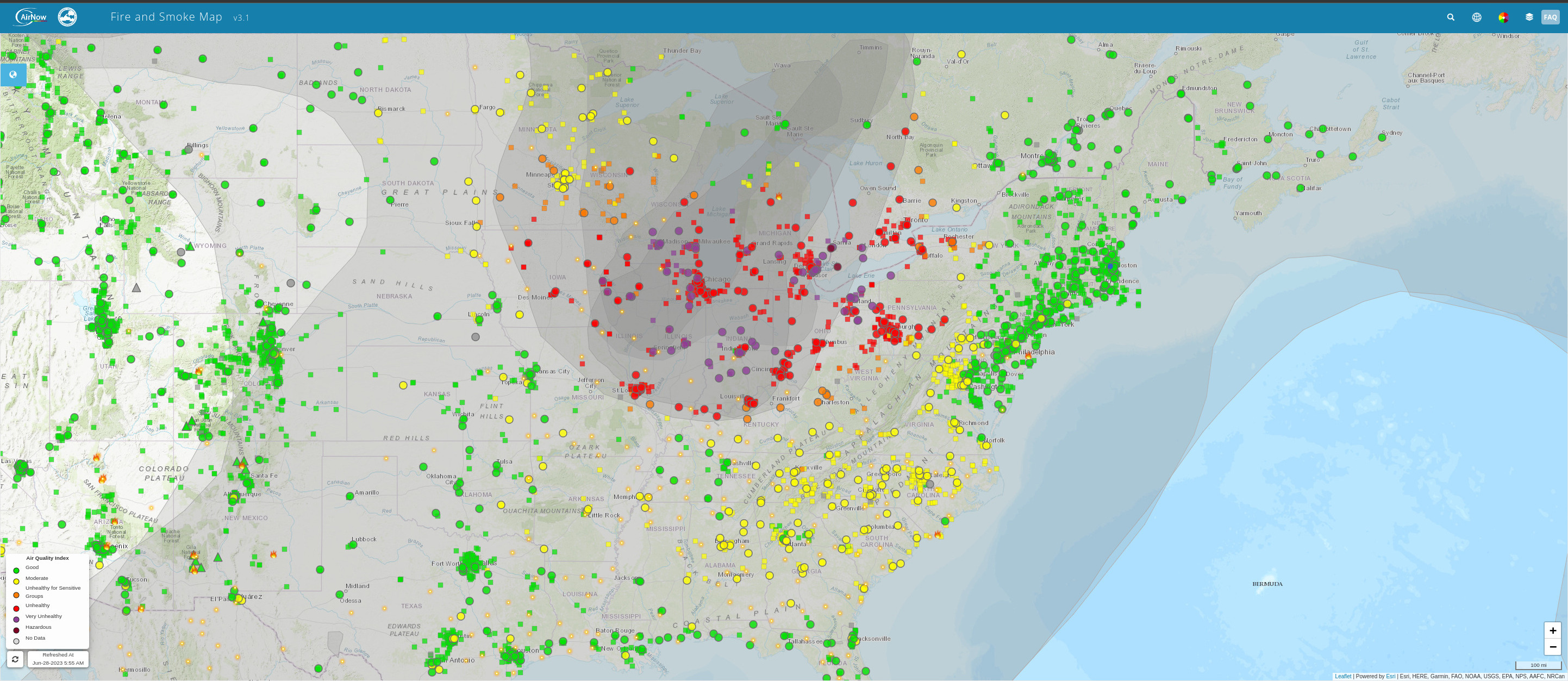 Forest Fires in Canda produce this summer a lot of air quality drops.