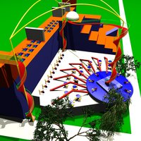 After arriving at Harvard, I scanned some pictures of the science center and wanted to build it in Povray. I worked on it an hour here an hour there. In 2001, I did not find any more time for the project. Here is science.inc and science.pov and greenhouse.inc (pic) leading to this picture. | . |