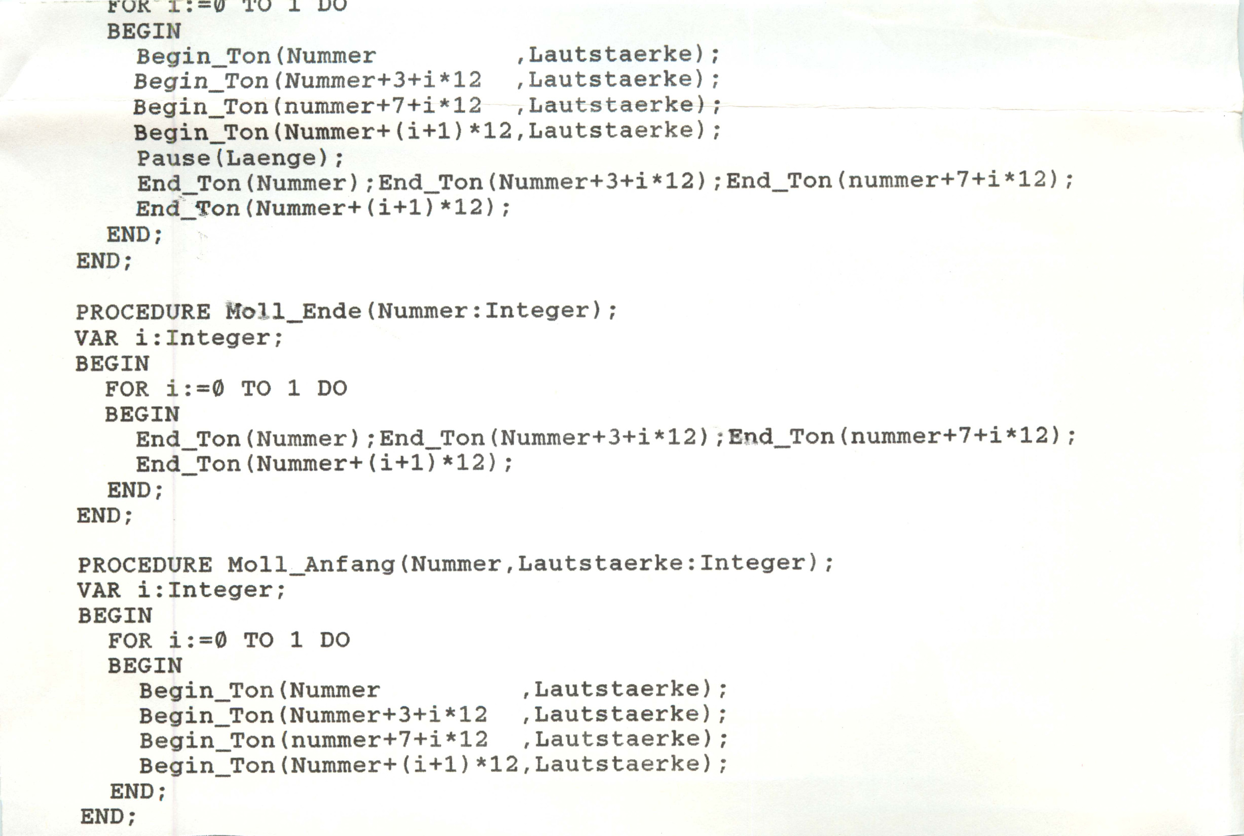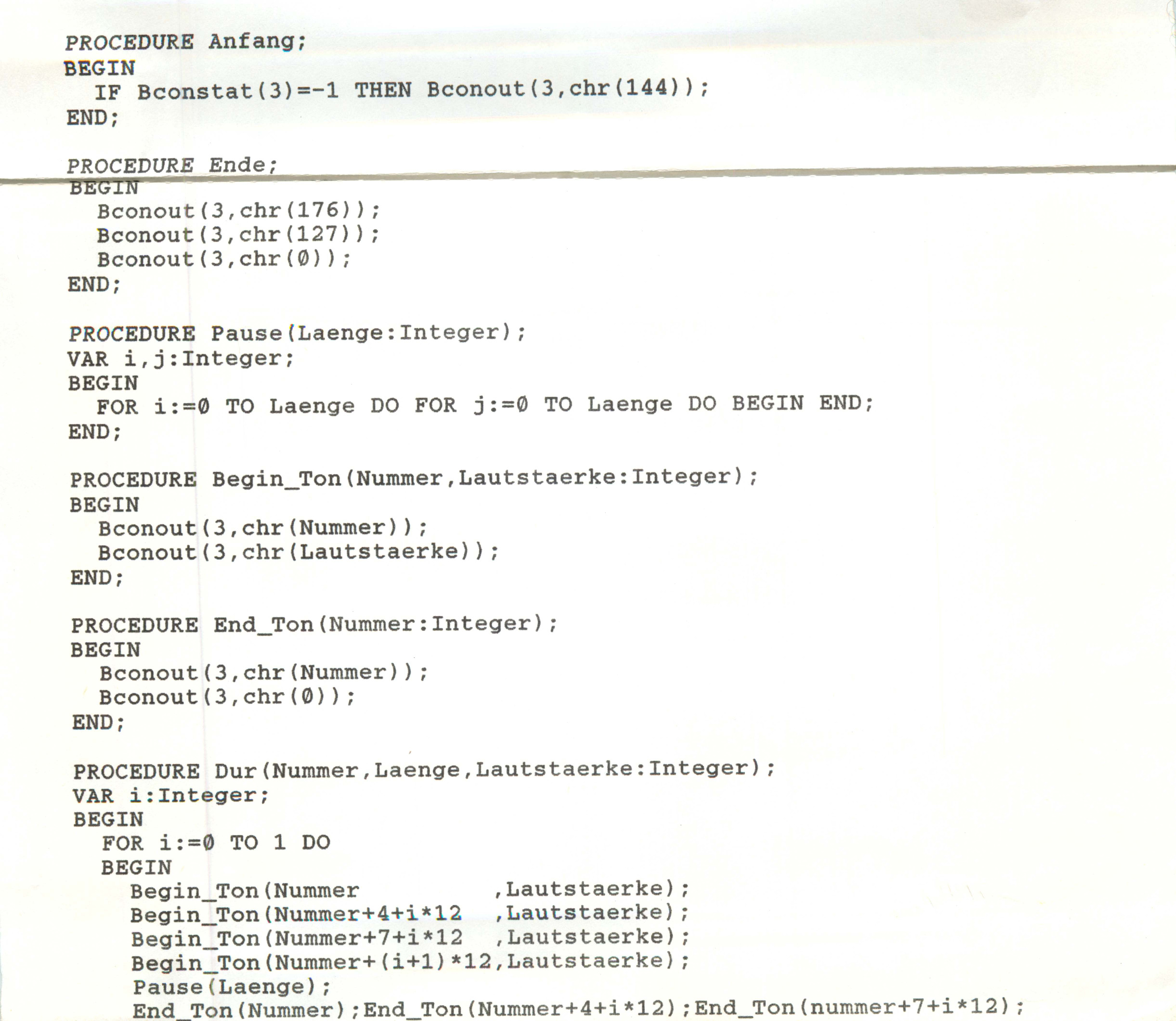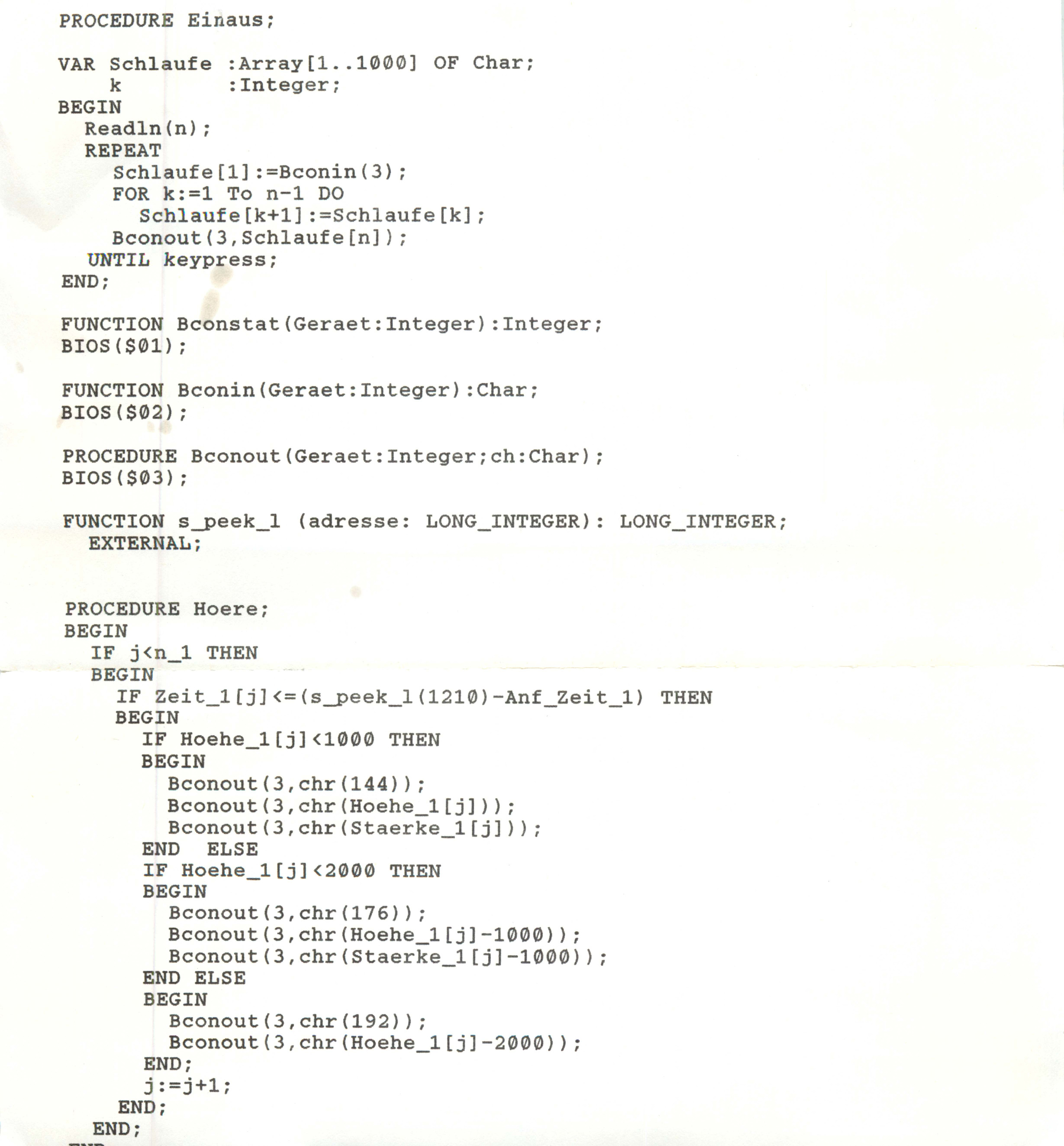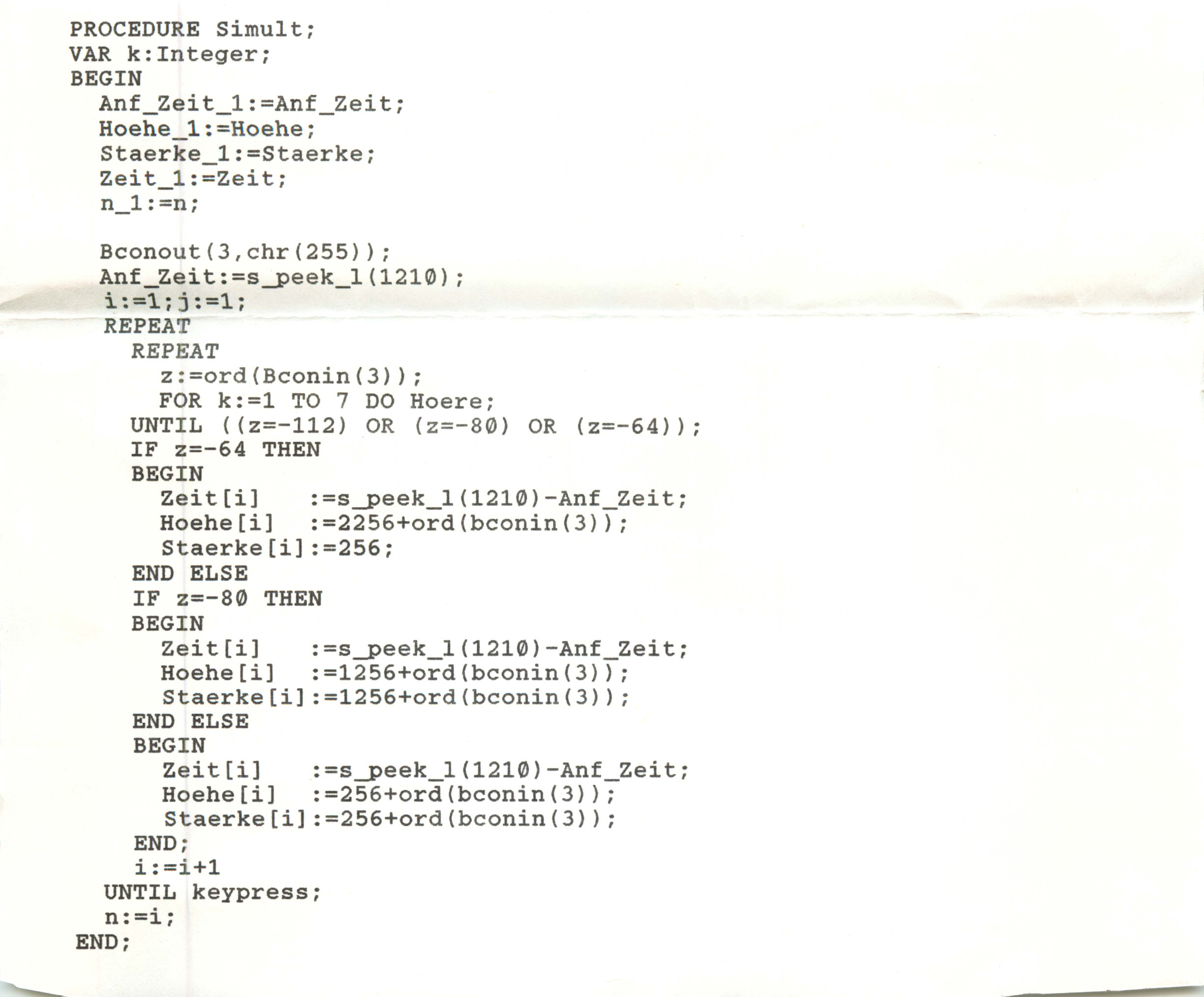 Here is the pascal printout of the Pascal program for the Atari, written around 1986 or 1987