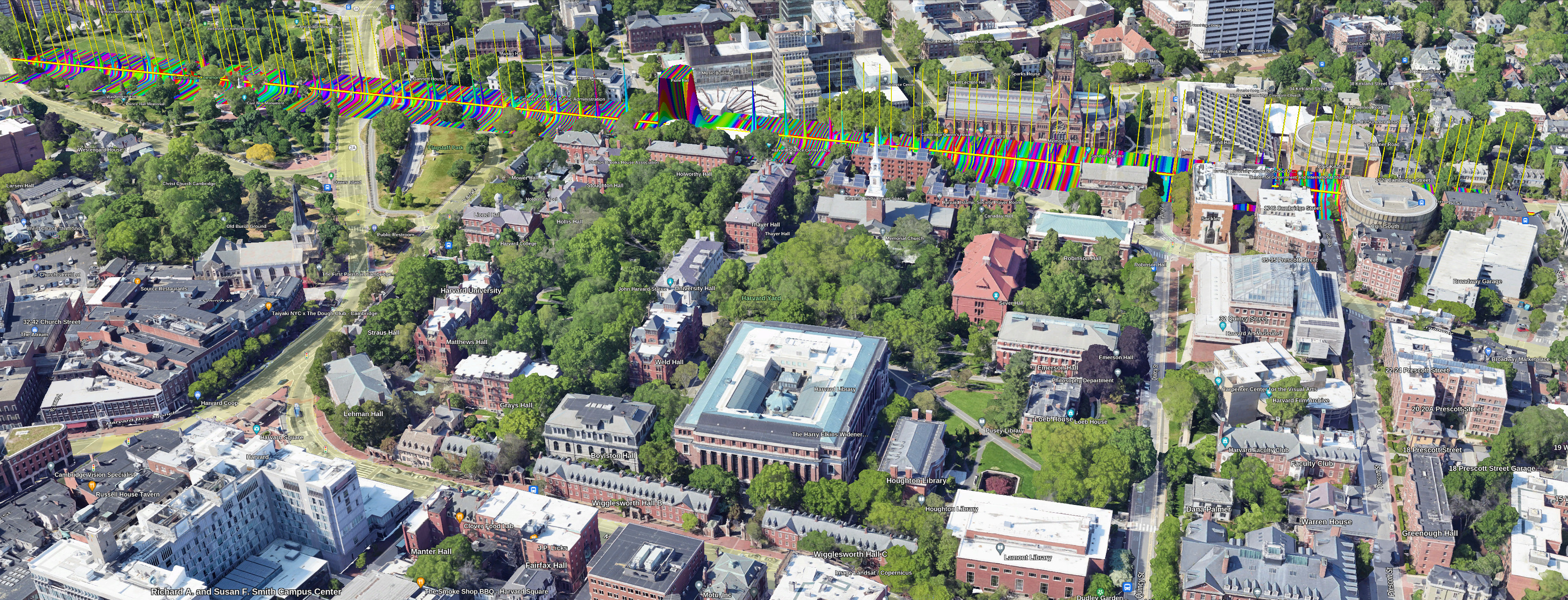 Flight through Cambridge, MA, especially Harvard. Music: Bach fugue: Partita, 6. |