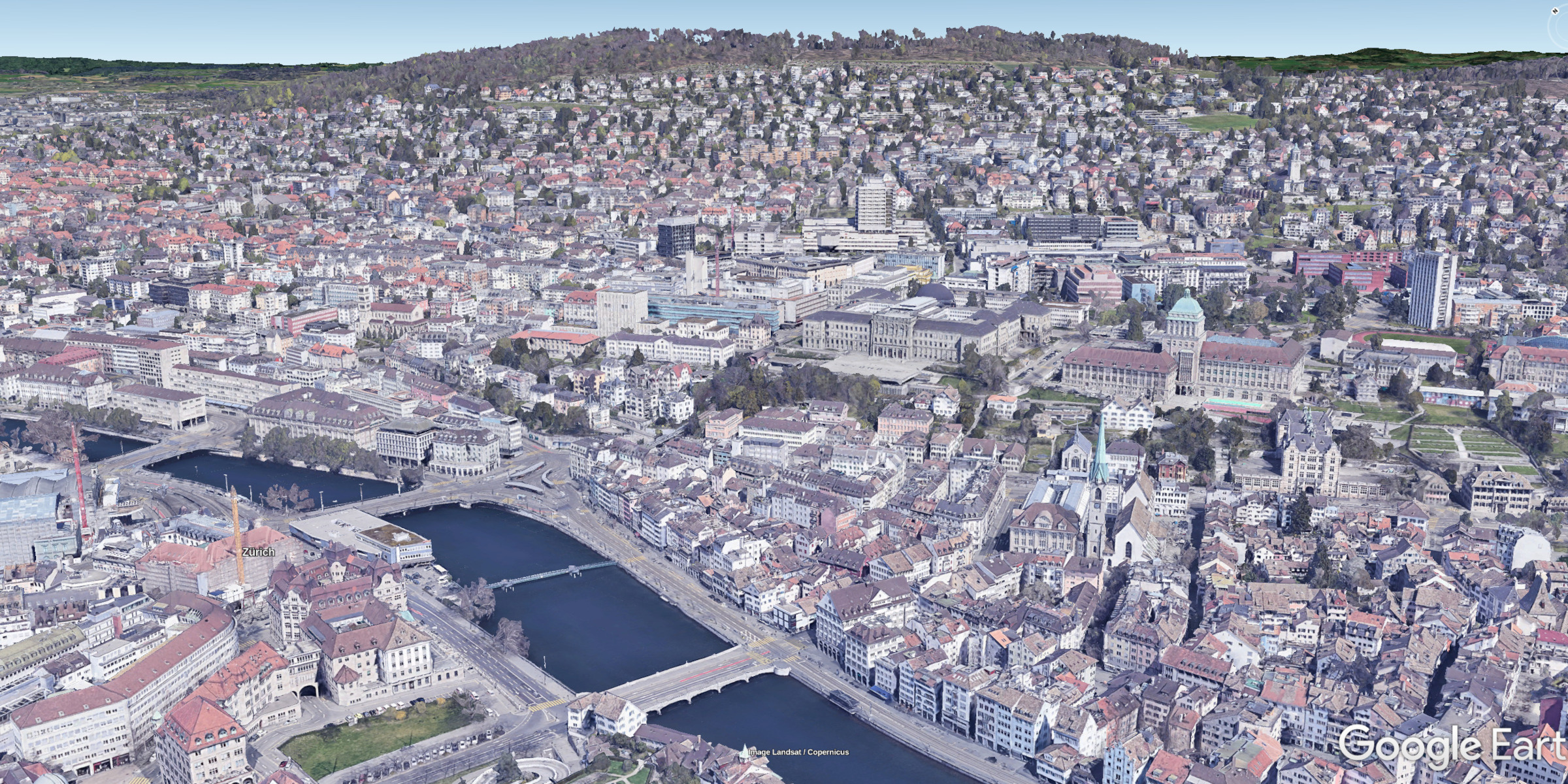 | Zürich | Page on rheinfall.com with guide how to switch to "flight simulator mode. | Also near Zürich, the google maps are quite good. This is a short flight from the rheinfalls to the Zürich Üetliberg. The background song is from "Enya", a sound track of the movie "Gladiator". |