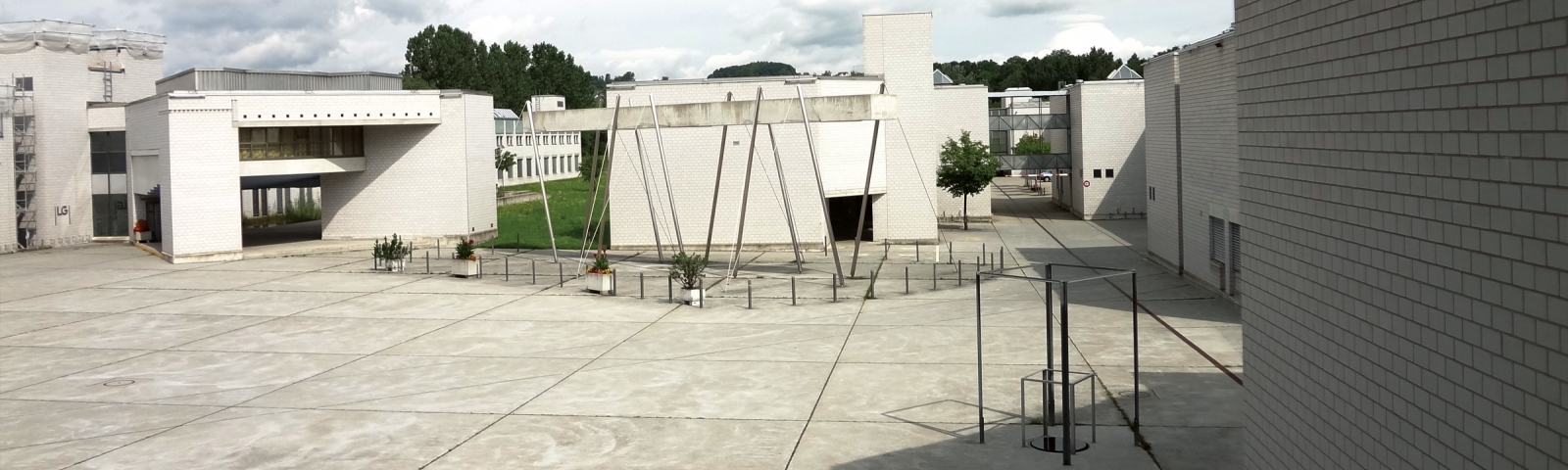 ratted me out. Here is a picture of the Kaserne Auenfeld in Frauenfeld. The artwork balances a