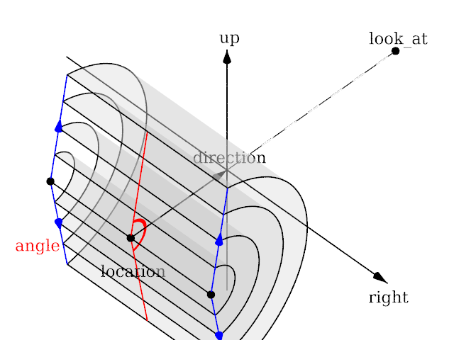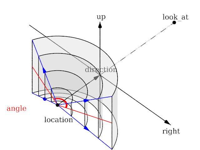 This section details settings, camera types, objects, and textures used in POV-Ray scene files. It is divided into the following sub-sections: