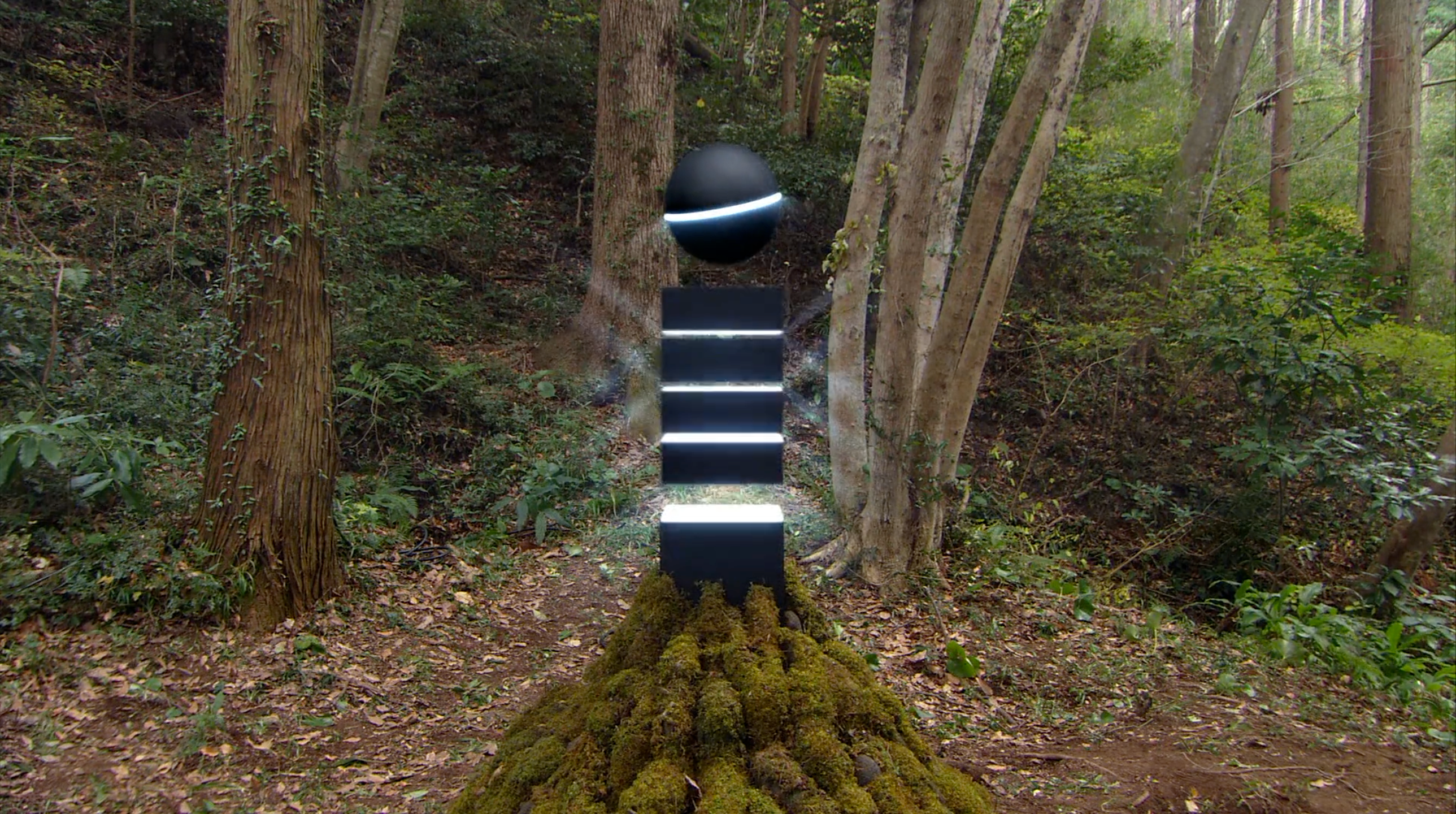 merged like people and plants, where a giant inverted pyramid floats in the sky