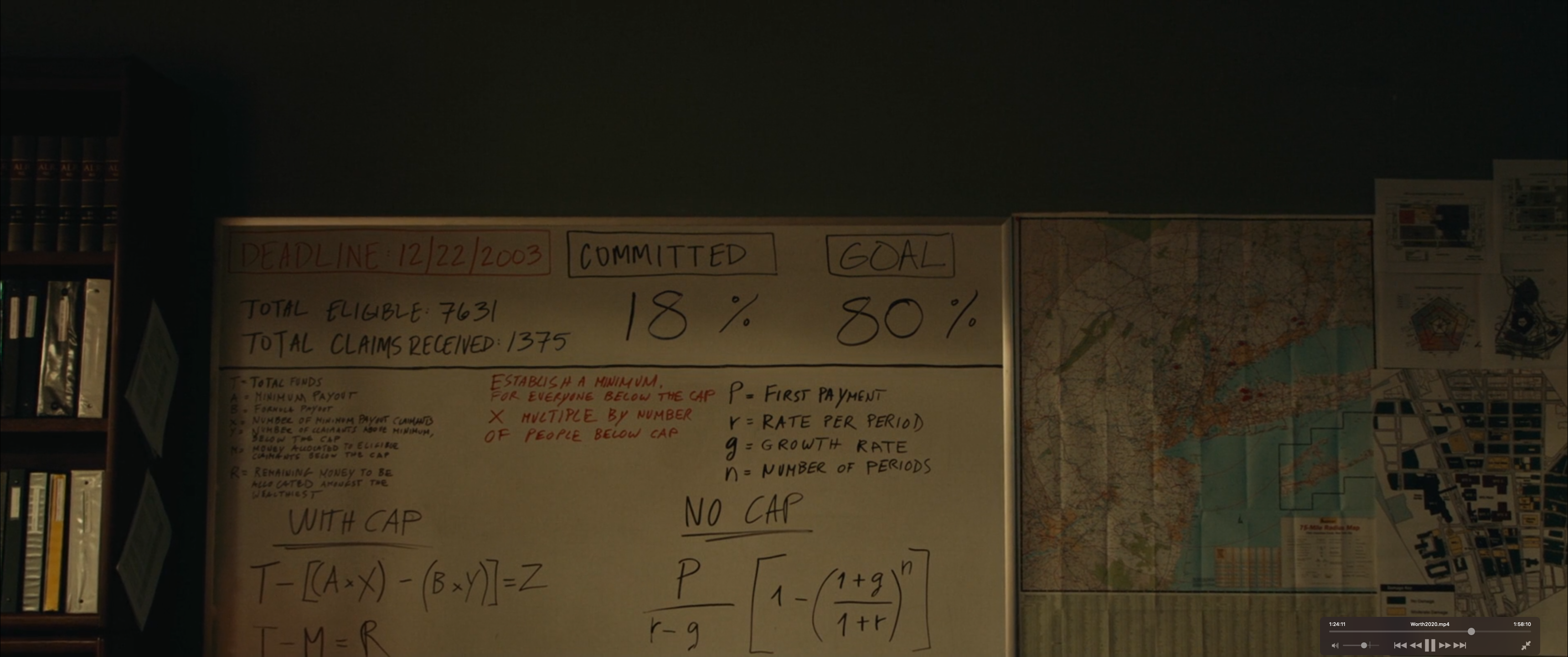 A tricky business to find a formula for compensation after the 9/11 attack in New York. Thanks to Timofte Nicolae for suggesting the movie.
